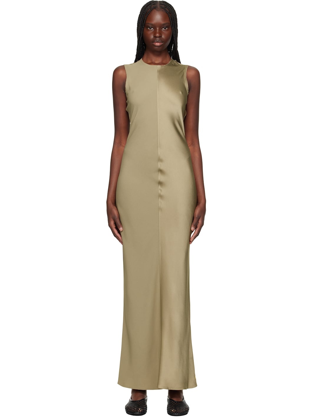 Acetate- and viscose-blend satin and crepe maxi dress. · Paneled construction · Raw edge at round neck and armscyes · Logo hardware at hem · Zip closure at back Supplier color: Ash 71% acetate, 29% viscose. Made in Madagascar 251482F055000