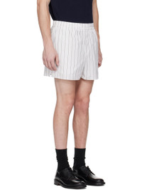 Cotton poplin shorts. Striped throughout. · Elasticized waistband · Three-pocket styling · Mock fly · Logo patch at back pocket Supplier color: Off-white/Blue 100% cotton. Made in Portugal 251482M193003