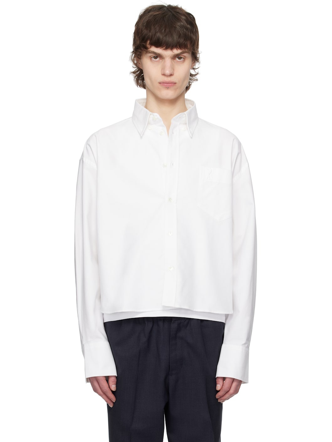 Oversized cotton oxford cloth shirt. · Button-down spread collar · Button closure · Embossed logo at patch pocket · Cropped shirttail hem · Pleated single-button barrel cuffs · Mother-of-pearl hardware Supplier color: Natural white 100% cotton. Made in Portugal 251482M192020