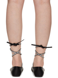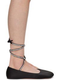 Satin ballerina flats in black. · Square toe · Crystal-cut accents at wraparound self-tie ankle strap · Logo embossed at padded leather footbed · Leather sole with rubber injection Supplier color: Black Upper: textile. Sole: leather, rubber. Made in Italy 242415F118002