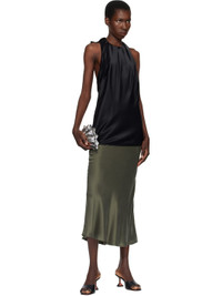 Grained nappa leather heeled sandals in black. · Open square toe · Logo-embossed leather footbed · Covered spool heel · Polished leather sole with rubber injection · Heel: H2.75" Supplier color: Black nappa Upper: leather. Sole: leather, rubber. Made in Italy 252415F125053