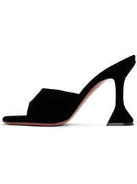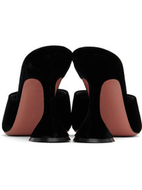 Velvet heeled sandals in black. · Open square toe · Logo-embossed padded goatskin footbed · Covered spool heel · Leather sole with rubber injection · Heel: H3.75" Supplier color: Black Upper: textile. Sole: leather, rubber. Made in Italy 242415F125060