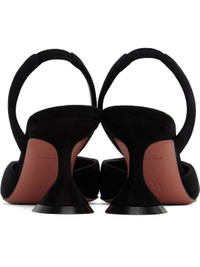 Goatskin suede heels in black. · Pointed toe · Partially elasticized slingback strap · Logo-embossed padded kidskin footbed · Covered spool heel · Leather sole with rubber injection · Heel: H2.75" Supplier color: Black Upper: goatskin. Sole: leather, rubber. Made in Italy 242415F122047