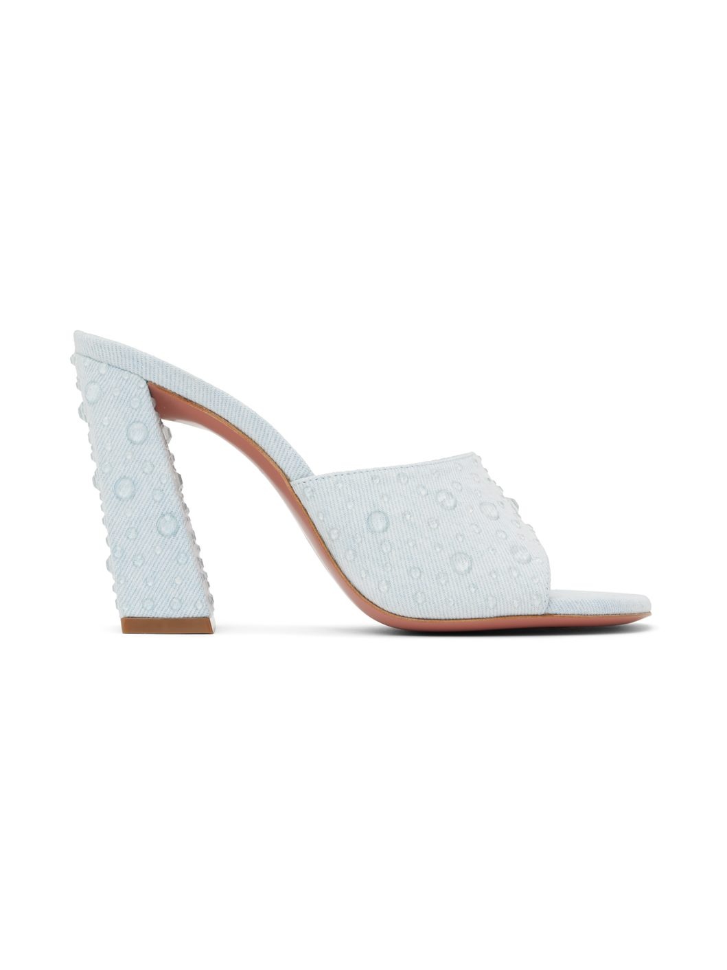 Denim heeled sandals in blue. · Transparent appliques throughout · Open square toe · Logo-embossed grained goatskin footbed · Covered block heel · Leather sole with rubber injection · Heel: H4" Supplier color: Light denim Upper: textile. Sole: leather, rubber. Made in Italy 242415F125030