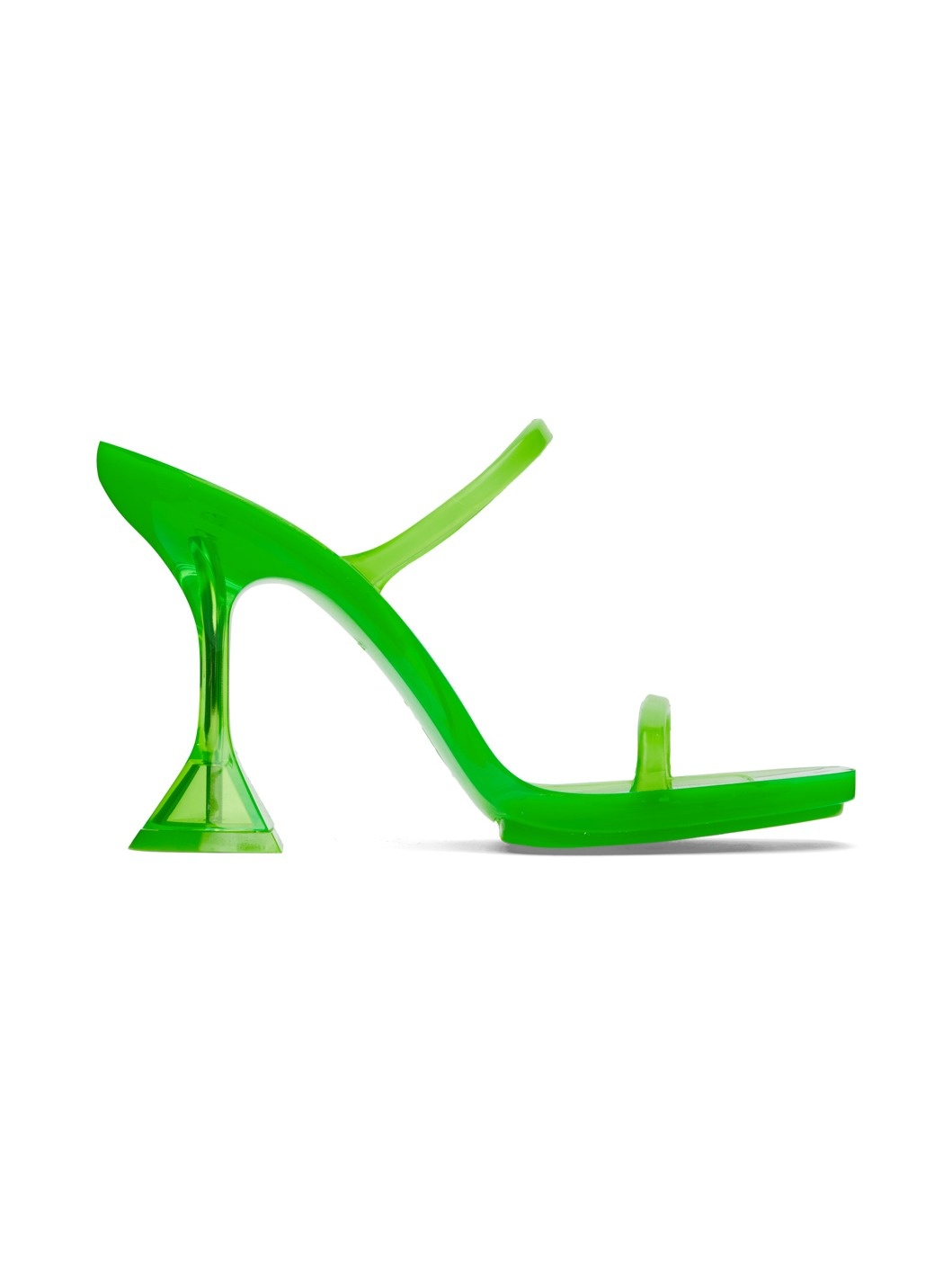 Transparent plexiglass slip-on heeled sandals in green. · Open square toe · Transparent TPU straps at vamp · Logo embossed at footbed · Spool heel with TPU injection · Plexiglass sole with TPU injection · Heel: H4" Supplier color: Fluo green Upper: plexiglass, thermoplastic polyurethane. Sole: plexiglass, thermoplastic polyurethane. Made in Italy 242415F125056