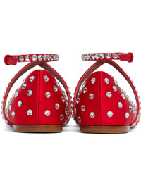 Satin ballerina flats in red. · Crystal-cut accents throughout · Asymmetric square toe · Wraparound pin-buckle ankle strap · Logo embossed at padded leather footbed · Leather sole with rubber injections Supplier color: Red Upper: textile. Sole: leather, rubber. Made in Italy 242415F118006