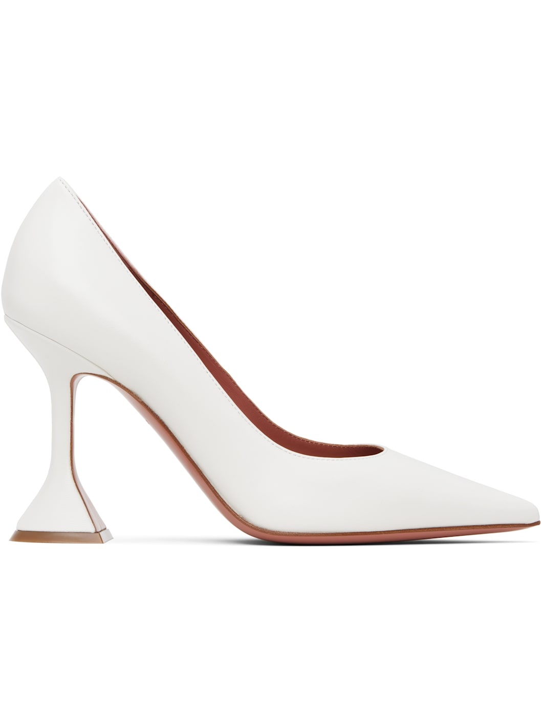 Grained nappa goatskin heels in white. · Pointed toe · Covered spool heel with rubber injection · Polished leather sole with rubber injection · Heel: H3.75" Supplier color: White nappa Upper: goatskin. Sole: leather, rubber. Made in Italy 252415F122010