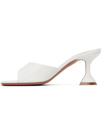 Grained nappa leather heeled sandals in white. · Open square toe · Logo-embossed leather footbed · Covered spool heel · Polished leather sole with rubber injection · Heel: H2.75" Supplier color: White nappa Upper: leather. Sole: leather, rubber. Made in Italy 252415F125054