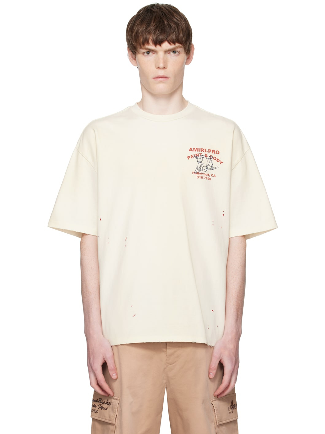 Cotton jersey T-shirt. · Distressing and paint splatter throughout · Rib-knit crewneck · Logo graphic printed at chest and back · Dropped shoulders Each item is unique. Please note finishings may vary. Supplier color: Ivory Body: 100% cotton. Trim: 97% cotton, 3% elastane. Made in Italy 252886M213028