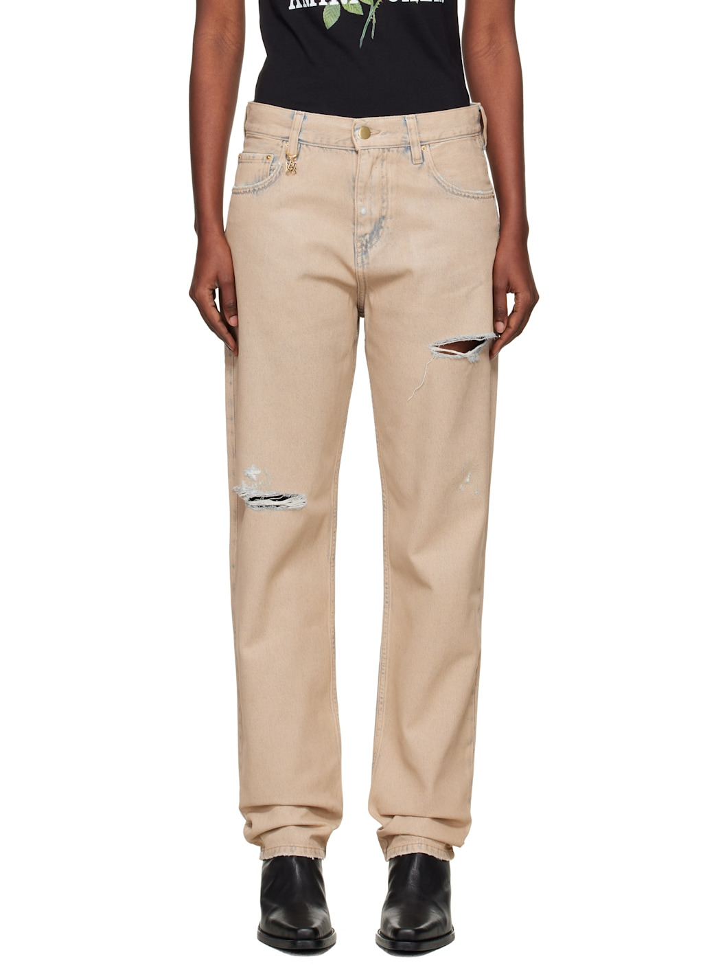 Beige Straight Ripped Jean