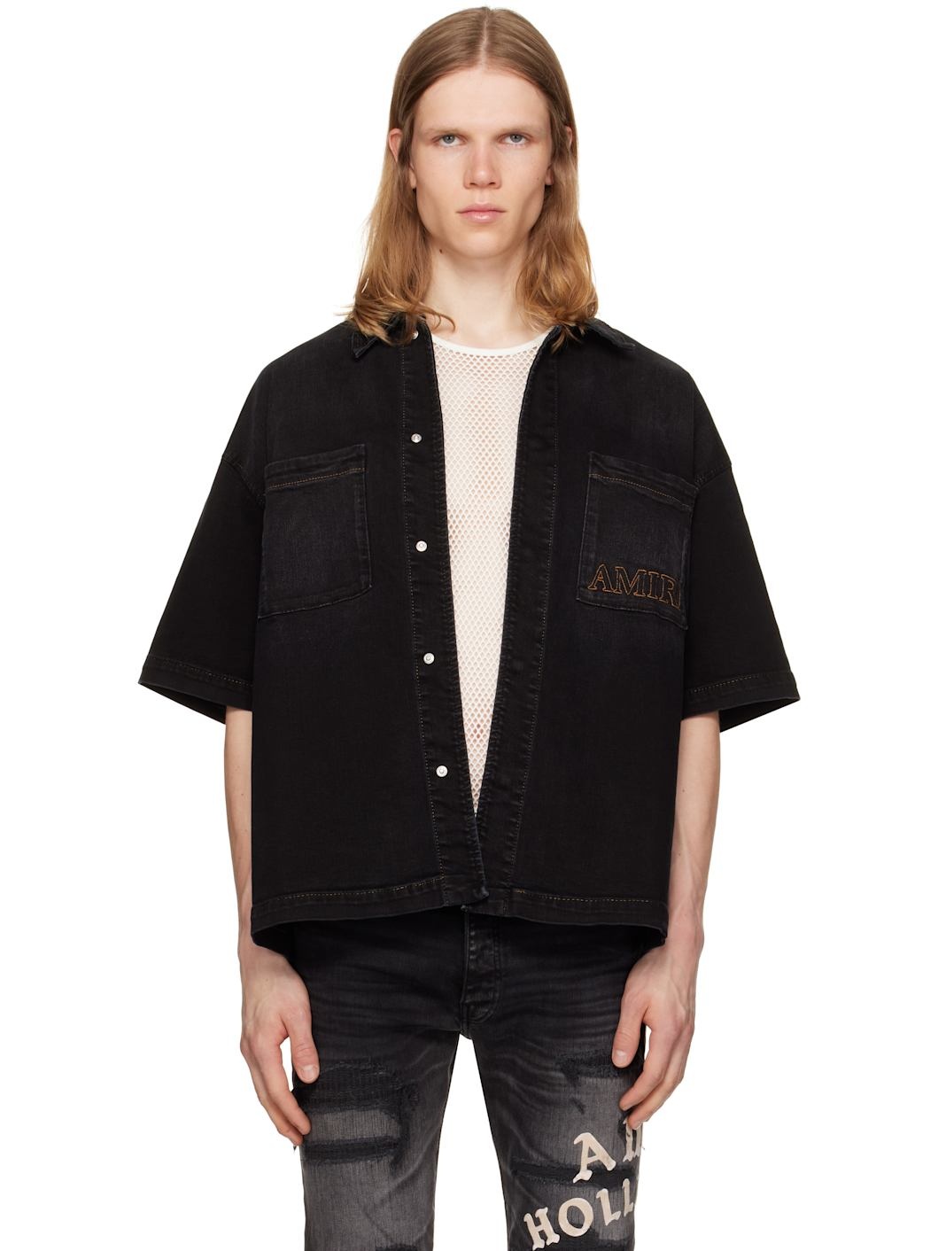 Black 'AMIRI' 3D Short Sleeve Snap Denim Shirt