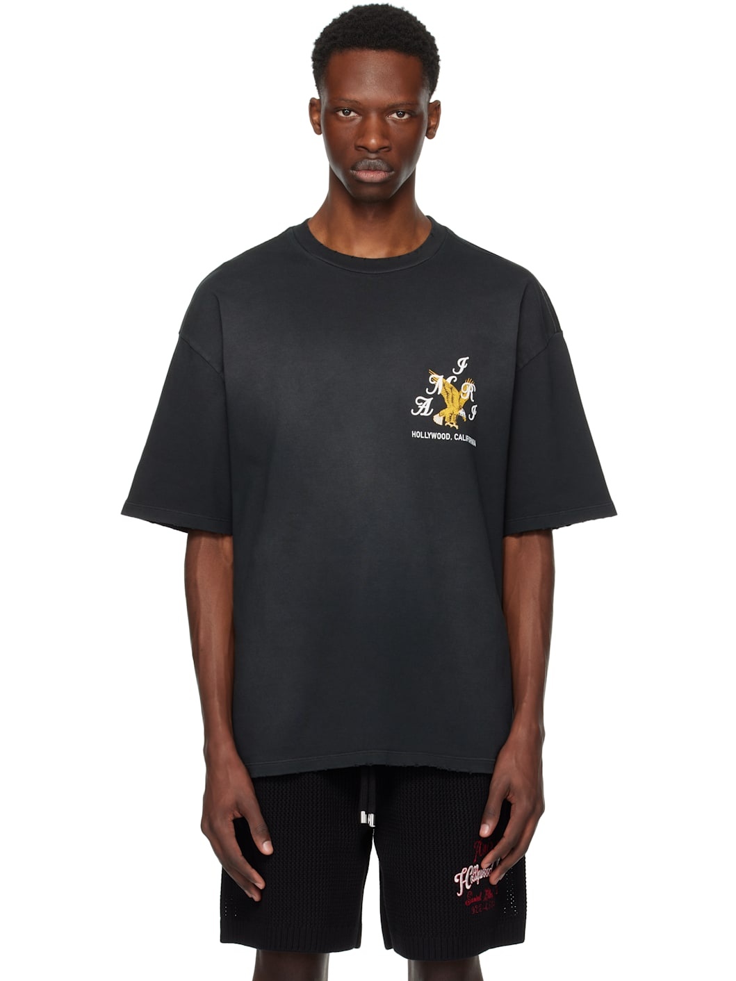 Cotton jersey T-shirt. Fading and distressing throughout. · Rib-knit crewneck · Logo graphic and text printed at chest and back · Dropped shoulders · Text embroidered at back Supplier color: Black 100% cotton. Made in Italy 252886M213025