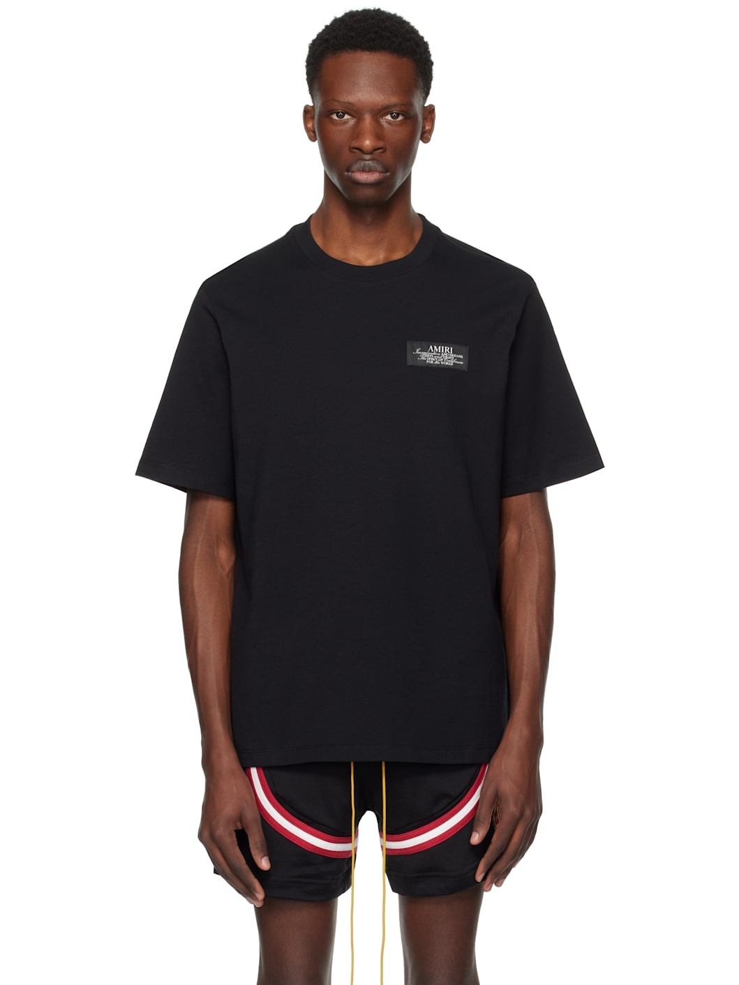 Cotton jersey T-shirt. · Rib-knit crewneck · Logo patch at chest · Dropped shoulders · Text printed at back Supplier color: Black 100% cotton. Made in Italy 252886M213013