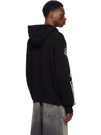 Knit cotton-blend hoodie. · Drawstring at hood · Logo embroidered at chest · Kangaroo pocket · Rib-knit hem and cuffs · Dropped shoulders · Intarsia graphic with loose threads at sleeves Supplier color: Black/White 98% cotton, 2% polyamide. Made in Italy 252886M202000