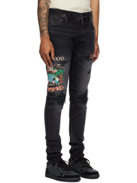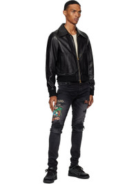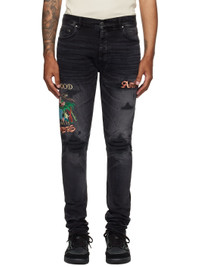 Skinny-fit stretch denim jeans. · Fading, whiskering, and distressing throughout · Belt loops · Five-pocket styling · Button fly · Logo embroidered at leg · Graphic and text embroidered at outseam · Leather logo patch at back waistband · Logo plaque at back pocket Supplier color: Faded black 92% cotton, 6% elastomultiester, 2% elastane. Made in United States 252886M186019