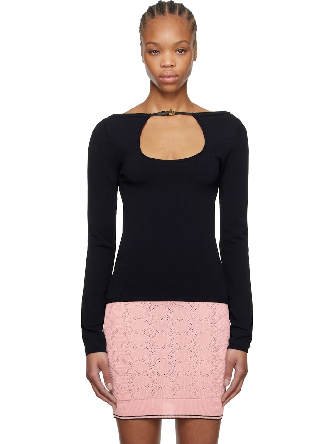 Rib-knit viscose-blend T-shirt. · Boat neck · Pin-buckle tab and logo hardware at chest · Keyhole cutout Supplier color: Black 83% viscose, 17% polyester. Made in Italy 251886F110018