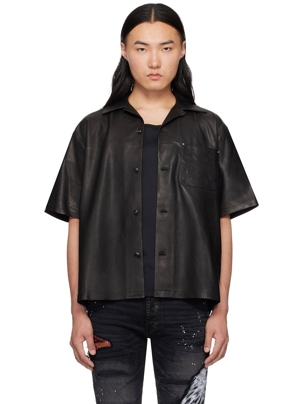 Grained leather shirt. · Open spread collar · Button closure · Logo embroidered at patch pocket and back collar Supplier color: Black 100% leather. Made in Turkey 252886M192033