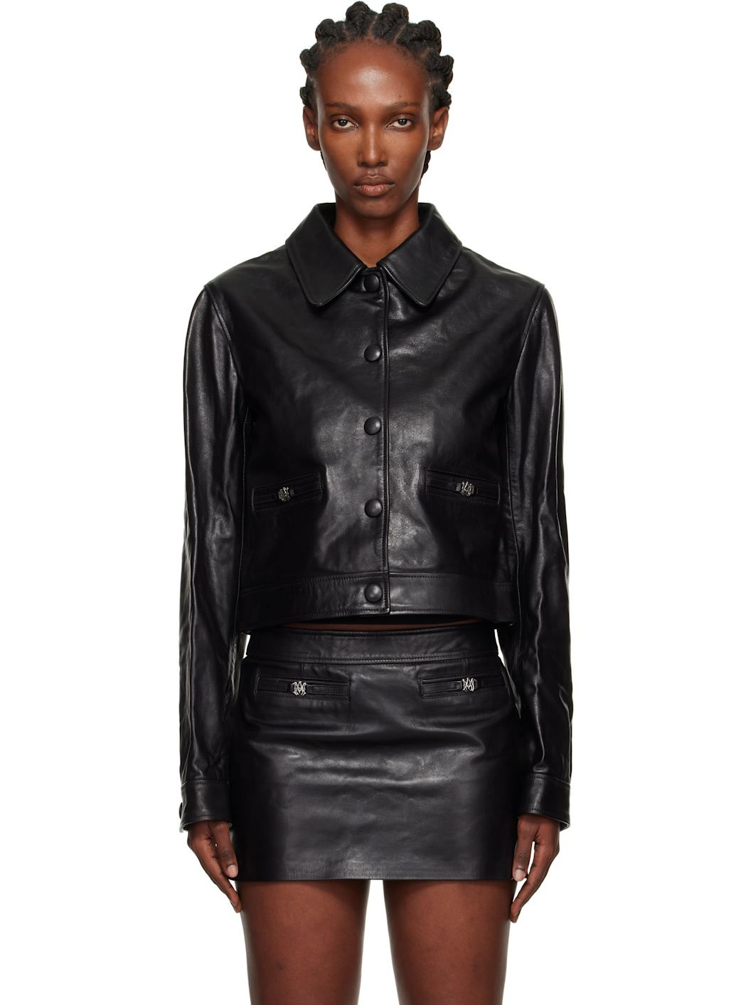Grained leather jacket. · Spread collar · Press-stud closure · Welt pockets with logo hardware at waist · Press-stud cuffs · Full satin twill lining Supplier color: Black Body: 100% leather. Lining: 100% viscose. Made in Turkey 252886F064000