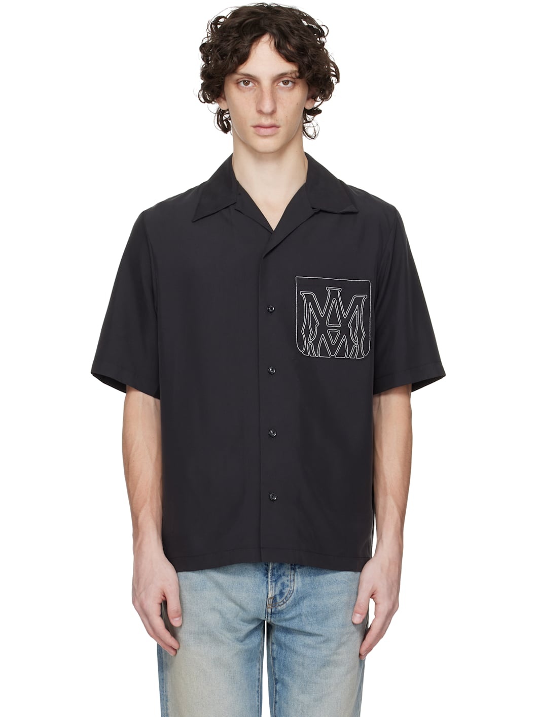 Modal-blend satin shirt. · Open-spread collar · Button closure · Patch pocket · Logo embroidered at chest and back collar Supplier color: Black 60% modal, 40% polyester. Made in Italy 252886M192010