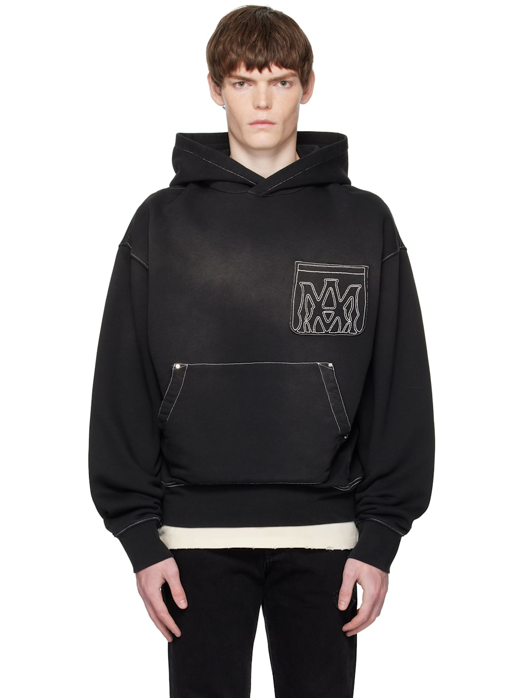French terry hoodie. · Fading throughout · Logo embroidered at hood · Logo-embroidered patch pocket at chest · Kangaroo pocket at waist · Rib-knit hem and cuffs · Dropped shoulders · Contrast stitching in white Supplier color: Black Body: 100% cotton. Trim 1: 95% cotton, 5% elastane. Trim 2: 100% lyocell. Made in Italy 252886M202006