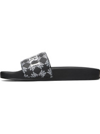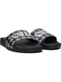 Coated canvas pool slides. · Open toe · Logo graphic pattern and logo printed at vamp · Logo embossed at midsole · Rubber sole Supplier color: Black Upper: textile, synthetic. Sole: rubber. Made in Viet Nam 261886M234000