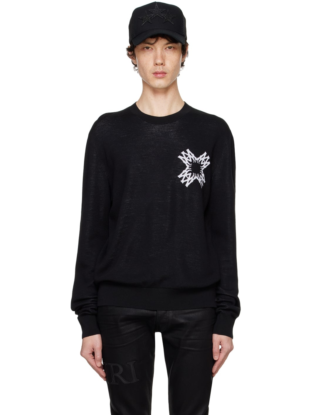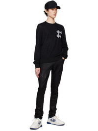 Knit wool- and viscose-blend sweater. · Rib knit crewneck, hem, and cuffs · Intarsia logo graphic at chest and back Supplier color: Black 90% wool, 10% viscose. Made in Italy 242886M201009
