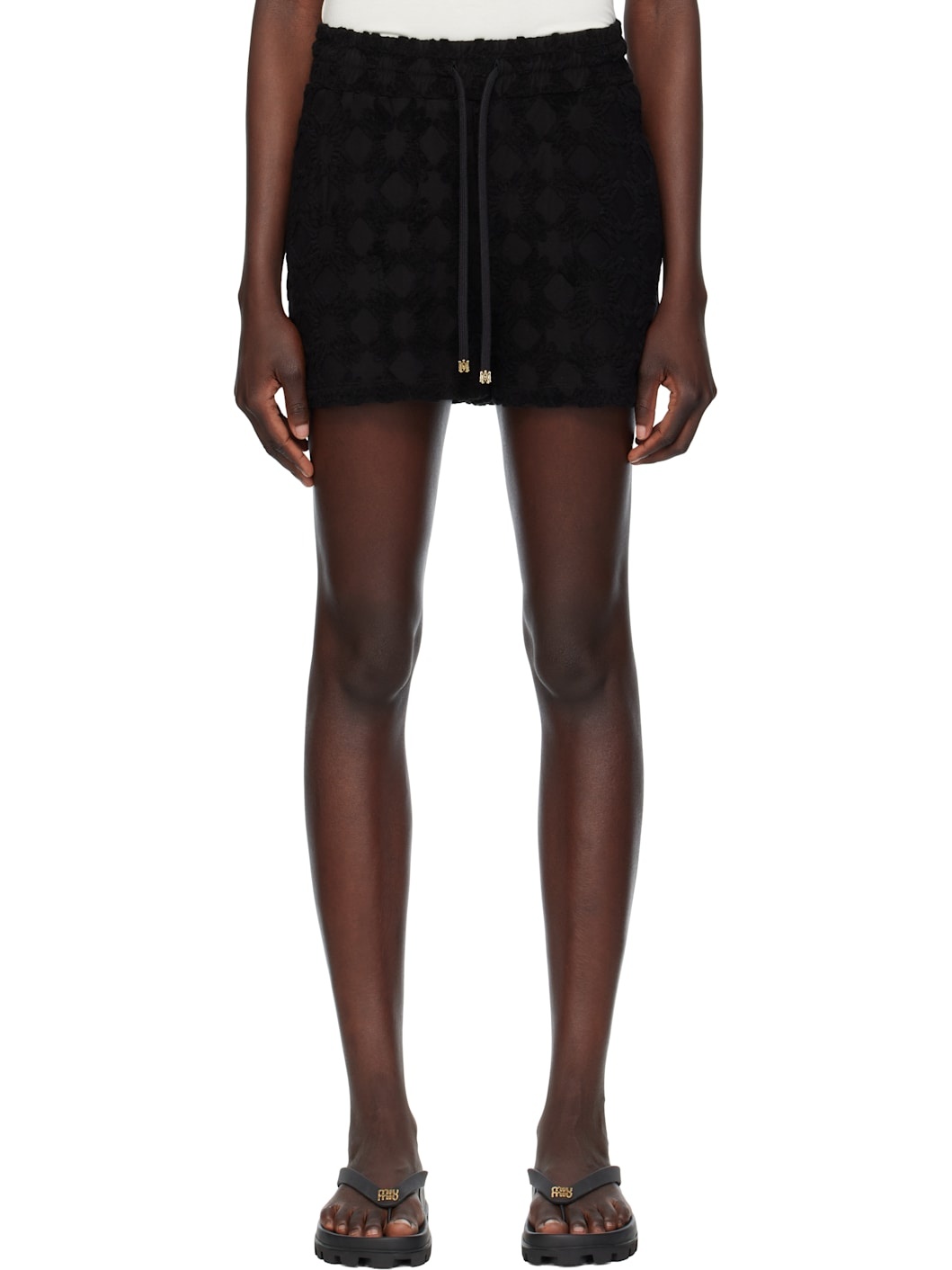 Cotton-blend jersey and terrycloth shorts. Jacquard logo pattern throughout. · Drawstring at elasticized waistband · Three-pocket styling · Logo plaque at back pocket Supplier color: Black Body: 80% cotton, 20% polyamide. Lining: 100% lyocell. Made in Italy 252886F088001