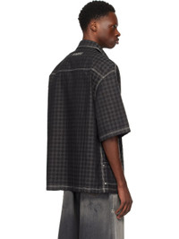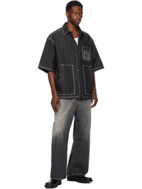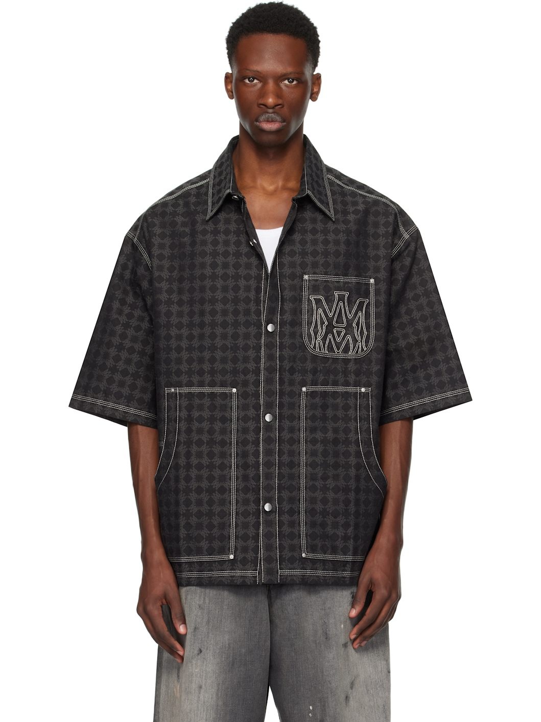 Cotton- and linen-blend twill shirt. Jacquard logo pattern throughout. · Spread collar · Press-stud closure · Patch pockets · Logo embroidered at chest · Contrast stitching in white Supplier color: Black 82% cotton, 18% linen. Made in Italy 252886M192022