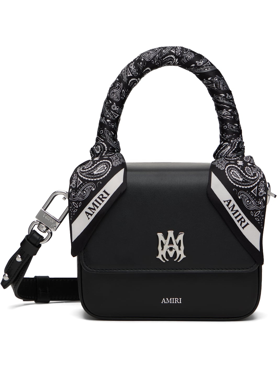 Buffed leather top handle bag in black. · Bandana-wrapped carry handle · Adjustable and detachable crossbody strap · Logo hardware at face · Logo stamp at face and back face · Concealed patch pocket at face · Magnetic flap closure · Zip pocket at interior · H5" x W6" x D2.5" Part of the Core collection. Supplier color: Black Leather. Made in Italy 252886F046003