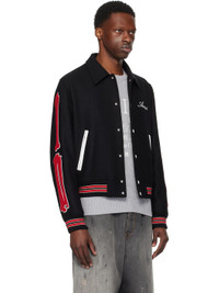 Virgin wool-blend melton bomber jacket. · Spread collar · Press-stud closure · Logo embroidered at chest · Zip pockets · Striped rib-knit hem and cuffs · Graphic appliques at sleeves · Full logo-woven satin lining Part of the Core collection. Supplier color: Black/Red Body: 75% virgin wool, 25% polyamide. Lining: 100% viscose. Made in Italy 252886M175002
