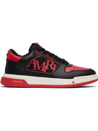 Low-top buffed leather sneakers. · Perforations at toe · Lace-up closure · Logo hardware at tongue and heel tab · Padded tongue and collar · Inset rubberized logo panel at sides · Logos embossed at midsole · Treaded rubber sole Supplier color: True red Upper: leather. Sole: rubber. Made in Viet Nam 252886M237026