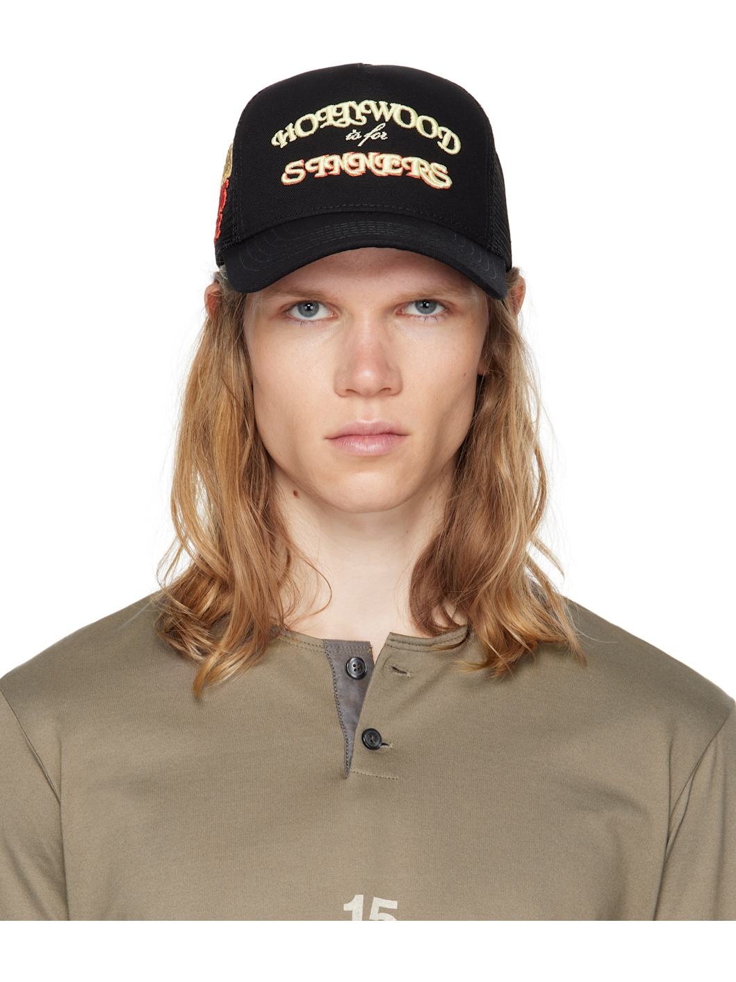 Cotton canvas and mesh cap. · Embroidered eyelets at crown · Text embroidered at face and side · Curved brim · Logo patch at back face · Snapback fastening · Twill lining Supplier color: Black Body 1: 100% cotton. Body 2: 100% polyester. Lining: 100% lyocell. Made in United States 252886M139000