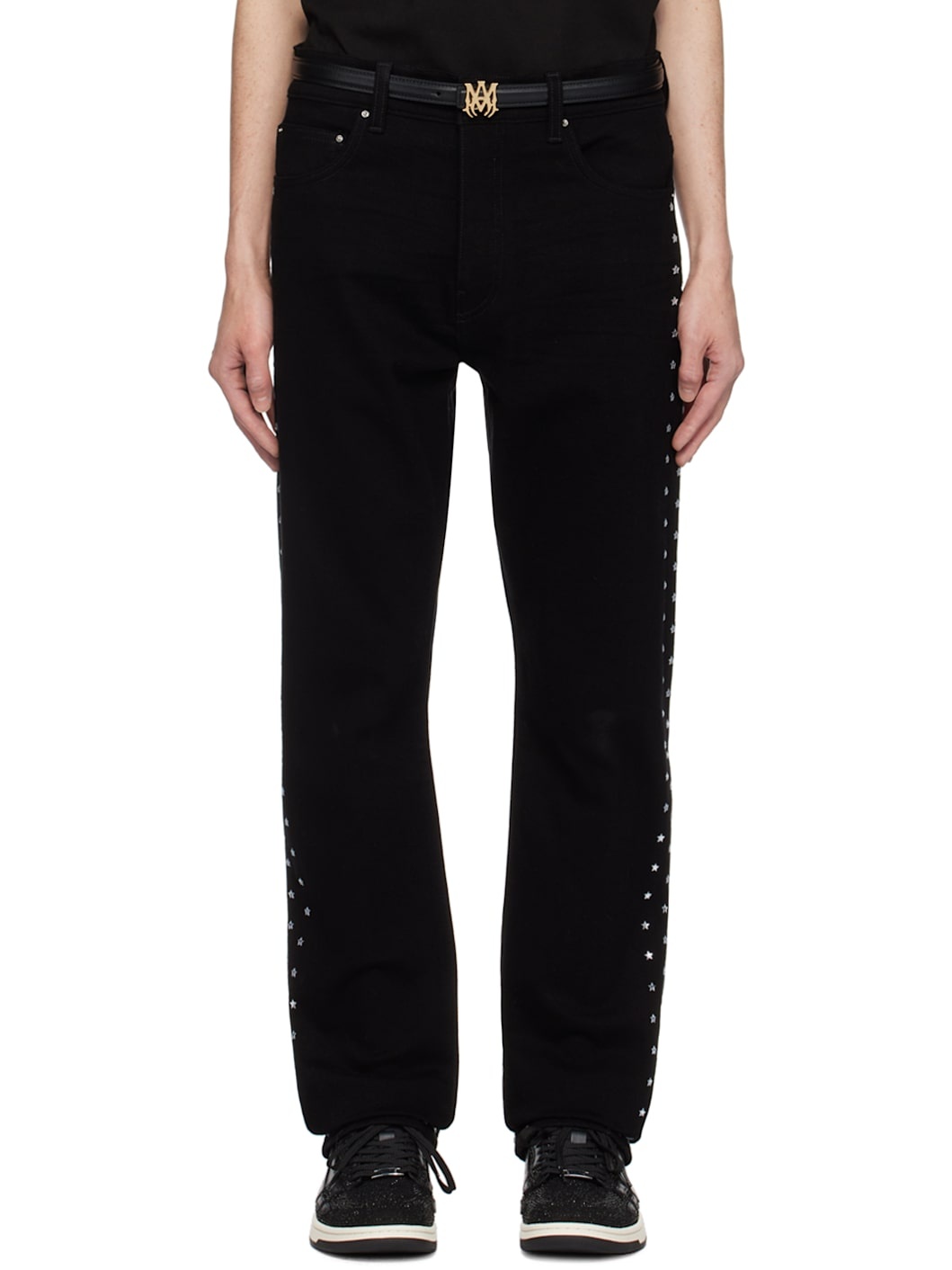 Stretch denim jeans. · Belt loops · Five-pocket styling · Button-fly · Graphic studs at outseams and cuffs · Jacron logo patch at back waistband · Logo plaque at back pocket · Logo-engraved silver-tone hardware Supplier color: Black OD 98% cotton, 2% elastane. Made in United States 242886M186068