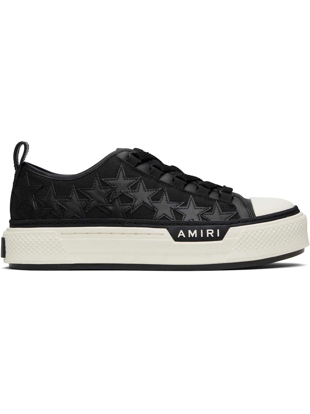 Low-top canvas and buffed leather sneakers. · Rubber cap toe · Lace-up closure · Logo embossed at tongue · Pull-loop at heel collar · Graphic appliques at sides · Buffed leather lining · Logo embossed at outer midsole · Treaded rubber sole Supplier color: Black/Black Upper: leather, textile. Sole: rubber. Made in Viet Nam 252886M237036
