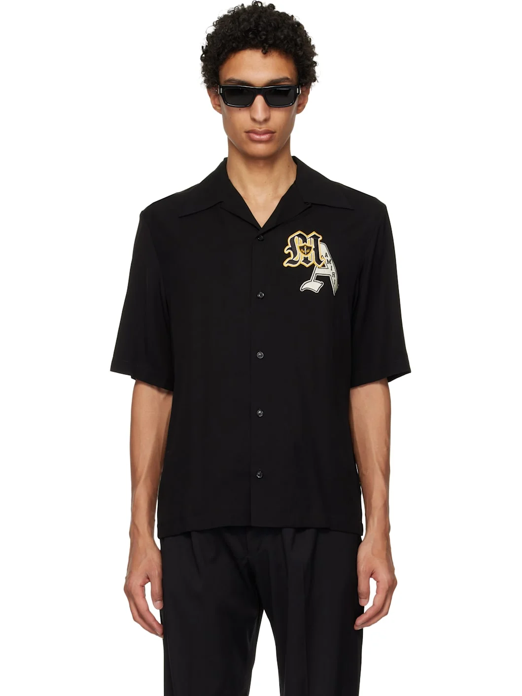 Viscose twill shirt. · Open spread collar · Button closure · Embroidered logo patch at chest Supplier color: Black 100% viscose. Made in Italy 261886M192004