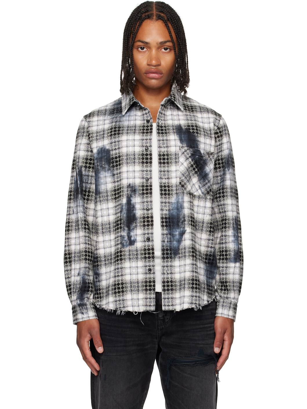Cotton flannel shirt. · Logo check pattern and discoloration throughout · Spread collar · Button closure · Logo plaque at patch pocket · Frayed shirttail hem · Buttoned barrel cuffs · Logo printed at back Supplier color: Black 100% cotton. Made in Italy 252886M192026
