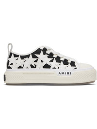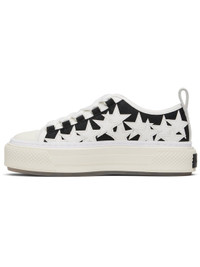 Low-top canvas and buffed leather sneakers. · Rubber cap toe · Lace-up closure · Logo embossed at tongue · Pull-loop at heel collar · Graphic appliques at sides · Buffed leather lining · Logo embossed at outer midsole · Treaded rubber sole Supplier color: Black Upper: leather, textile. Sole: rubber. Made in Viet Nam 252886F128003