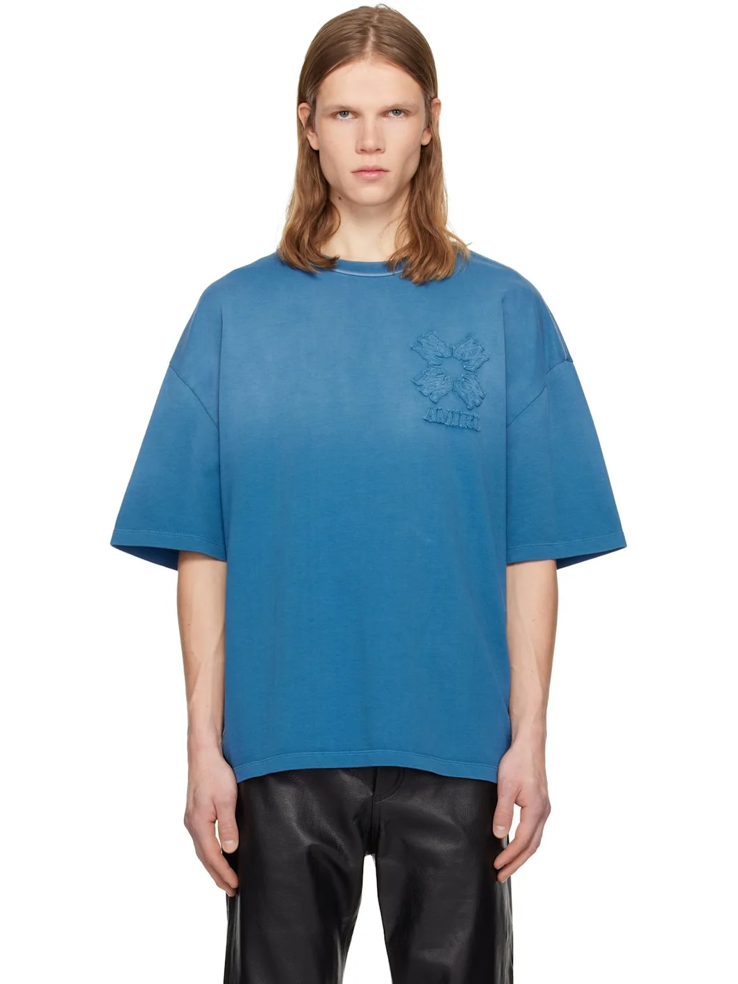 Cotton jersey T-shirt. · Fading throughout · Rib-knit crewneck · Frayed logo applique at chest and back · Dropped shoulders Supplier color: Dark Indigo Body: 100% cotton. Trim: 95% cotton, 5% elastane. Made in Italy 261886M213065