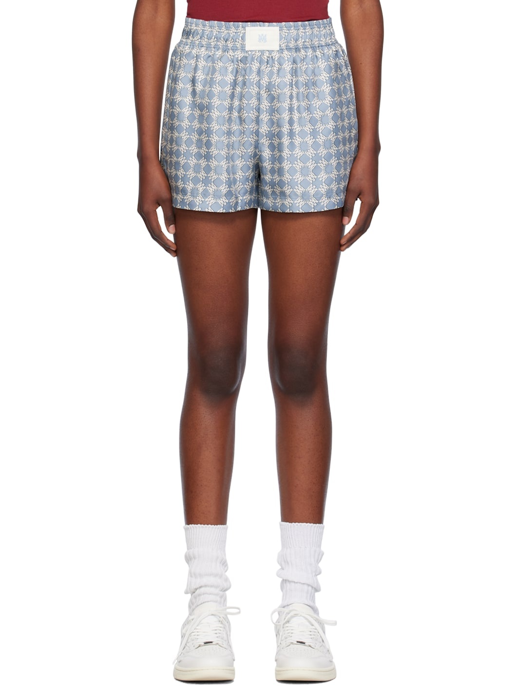Silk twill shorts. Logo pattern printed throughout. · Logo patch at elasticized waistband · Two-pocket styling Supplier color: Dusty blue 100% silk. Made in Italy 242886F088012