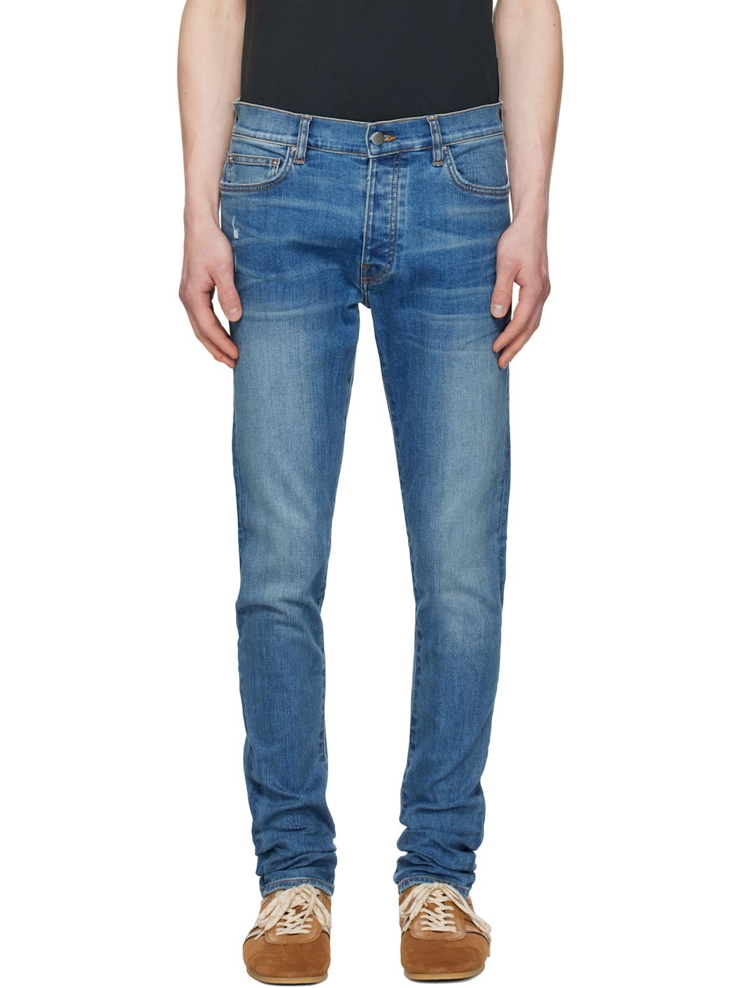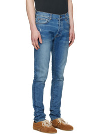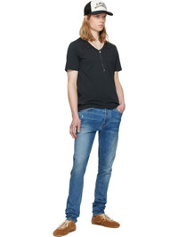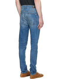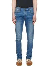 Stretch denim jeans. Fading and subtle distressing throughout. · Skinny-fit · Belt loops · Five-pocket styling · Button fly · Leather logo patch at back waistband · Logo hardware at back pocket · Silver-tone hardware · Contrast stitching in tan Part of the Core collection. Supplier color: Dark indigo 92% cotton, 6% elastomultiester, 2% elastane. Made in United States 252886M186041