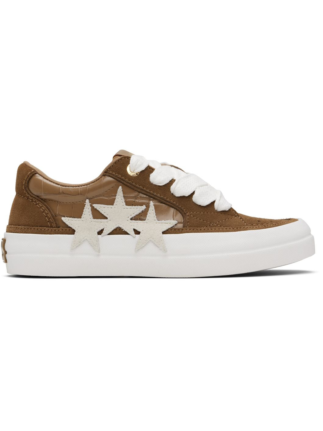 Low-top suede and croc-embossed leather sneakers. · Lace-up closure · Logo patch at padded tongue · Padded collar · Graphic appliques at outer side · Mesh lining · Rubberized logo patch at heel · Textured rubber midsole · Treaded rubber sole Supplier color: Dark brown Upper: leather. Sole: rubber. Made in Cambodia 252886M237076