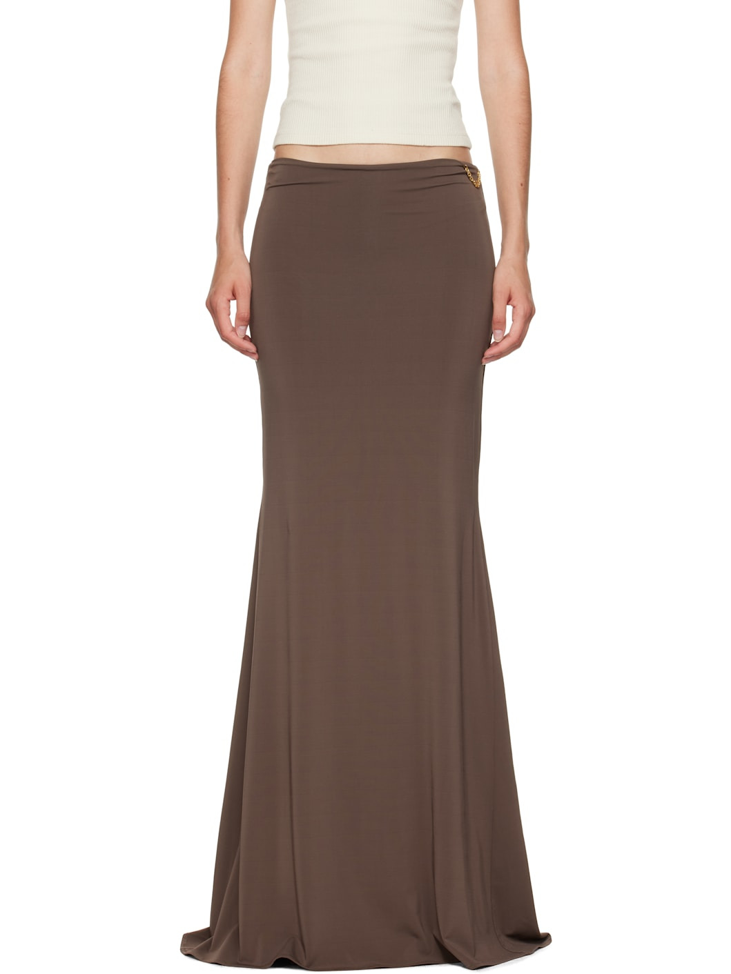 Stretch viscose jersey maxi skirt. · Elasticized waistband · Chain with logo hardware at outseam · Fully lined Supplier color: Walnut brown 96% viscose, 4% elastane. Made in Italy 252886F093000