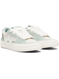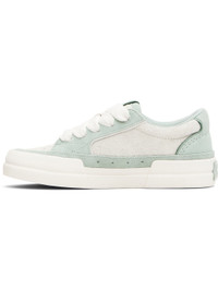 Low-top suede and brushed suede sneakers. · Graphic perforations at toe · Lace-up closure · Logo patch at padded tongue · Padded collar · Graphic appliques at outer side · Mesh lining · Rubberized logo patch at heel · Treaded rubber sole Supplier color: Frosty green Upper: leather. Sole: rubber. Made in Cambodia 252886F128023
