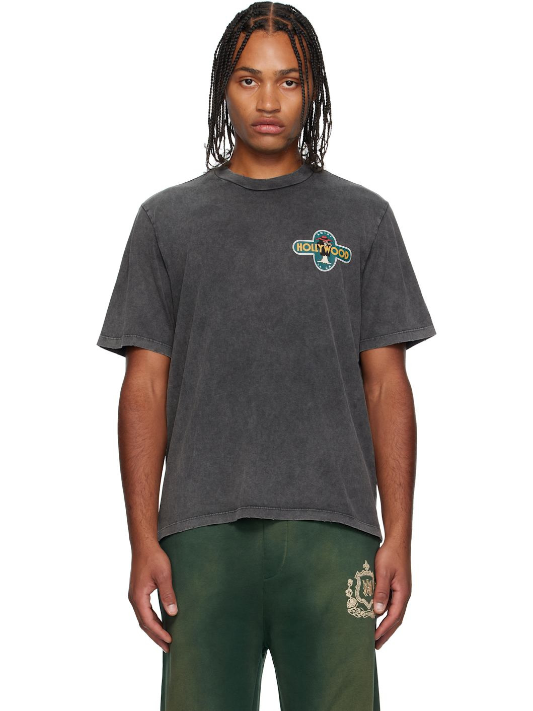 Cotton jersey T-shirt. · Fading and subtle distressing throughout · Rib-knit crewneck · Logo and graphic printed at chest and back Supplier color: Black 100% cotton. Made in Italy 252886M213063