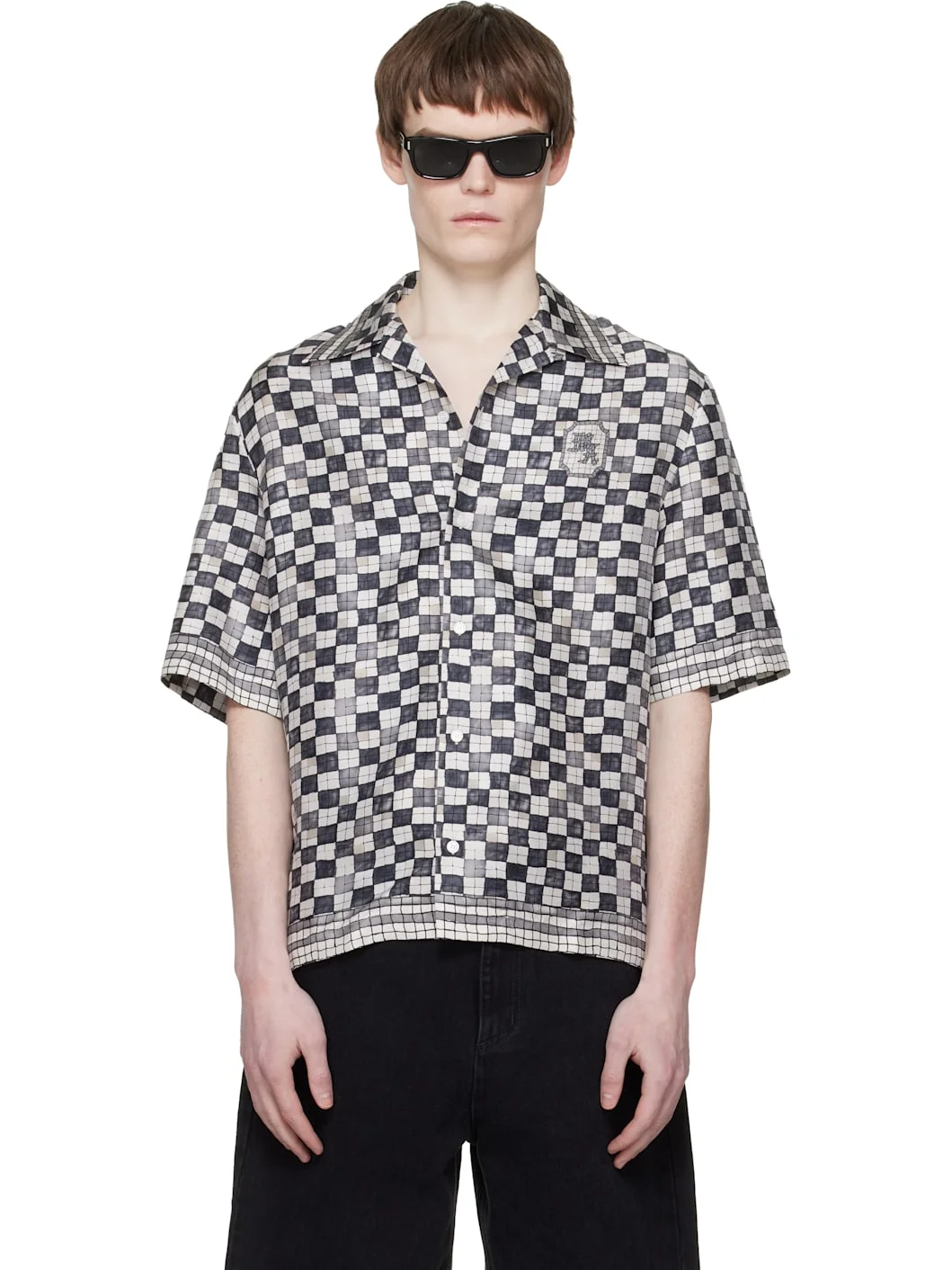 Gray MA Checkered Bowling Shirt