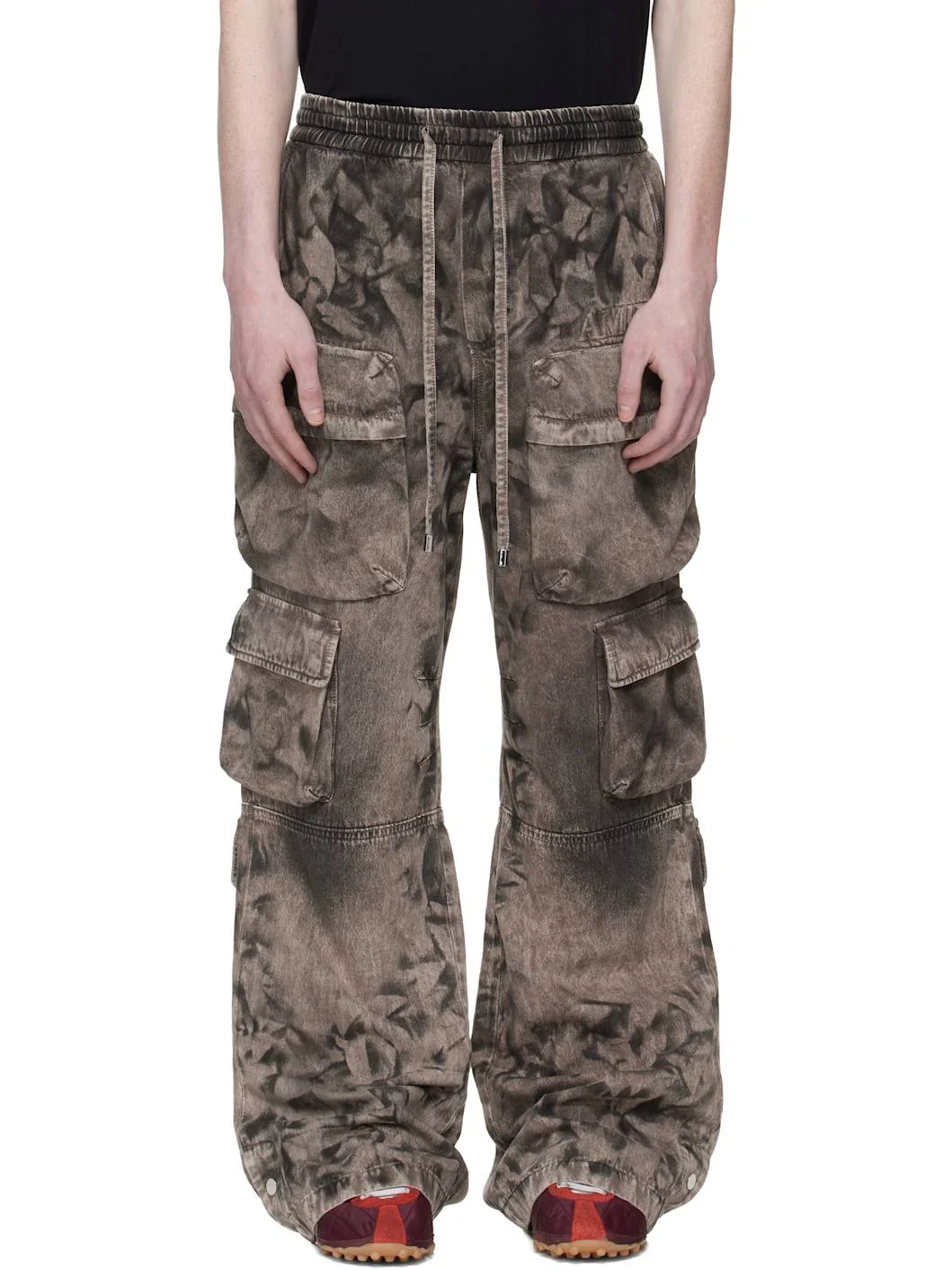 Overdyed non-stretch denim jeans. · Fading and whiskering throughout · Drawstring at elasticized waistband · Four-pocket styling · Zip fly · Logo embroidered at front · Cargo pockets at legs · Press-stud vent at cuffs · Logo patch at back waistband · Logo plaque at back pocket Supplier color: Smokey Topaz 100% cotton. Made in Italy 261886M188000