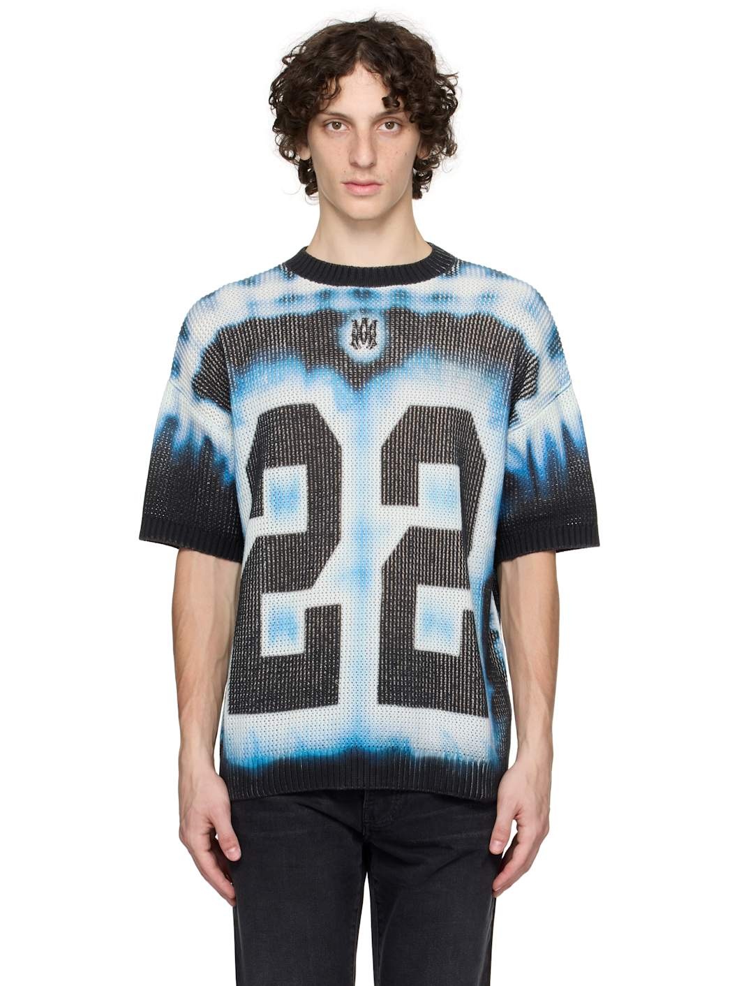 Purl-knit cotton T-shirt. Dyed pattern throughout. · Rib-knit crewneck, hem, and cuffs · Logo and text printed at front · Dropped shoulders Supplier color: Ashley blue 100% cotton. Made in Italy 252886M213000