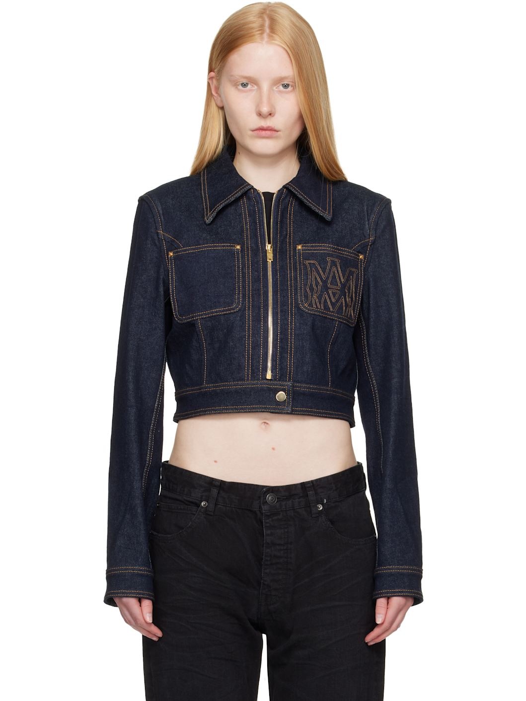 Stretch denim jacket. · Spread collar · Zip closure · Patch pockets at chest · Logo embroidered at pocket · Press-stud fastening at cropped hem · Press-stud barrel cuffs · Suede logo patch at back hem · Logo-engraved gold-tone hardware · Contrast stitching in tan Supplier color: Raw indigo 99% cotton, 1% elastane. Made in Italy 252886F060000