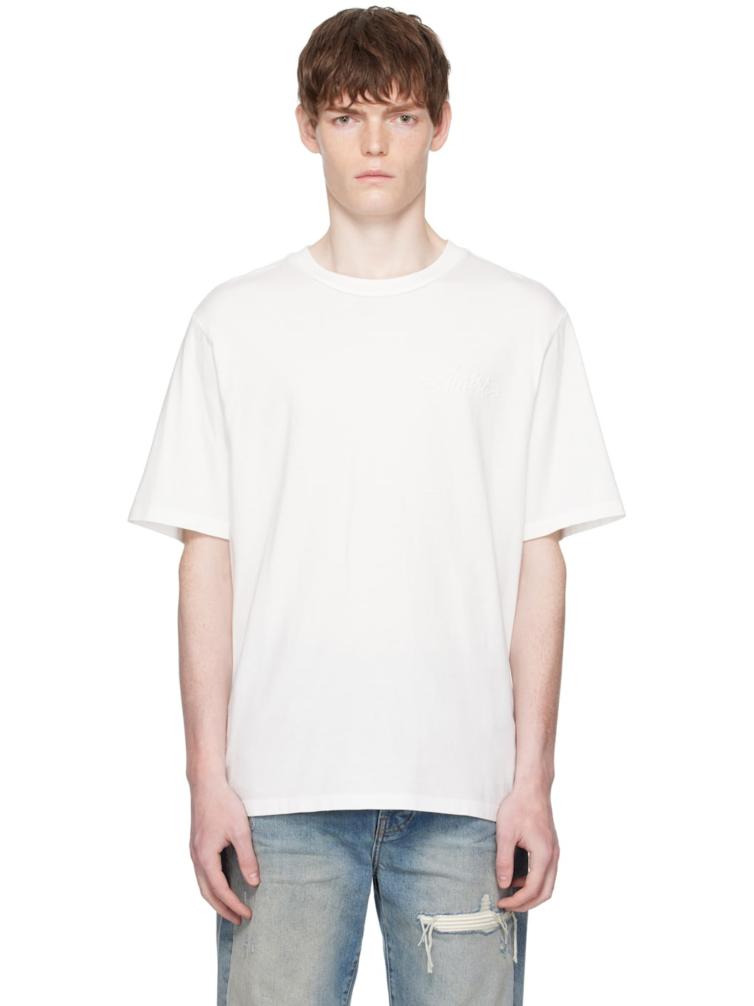 Cotton jersey T-shirt. · Rib-knit crewneck · Logo embroidered at chest and back · Dropped shoulders · Faded bandana-style applique at back Supplier color: Ivory 100% cotton. Made in Italy 252886M213004
