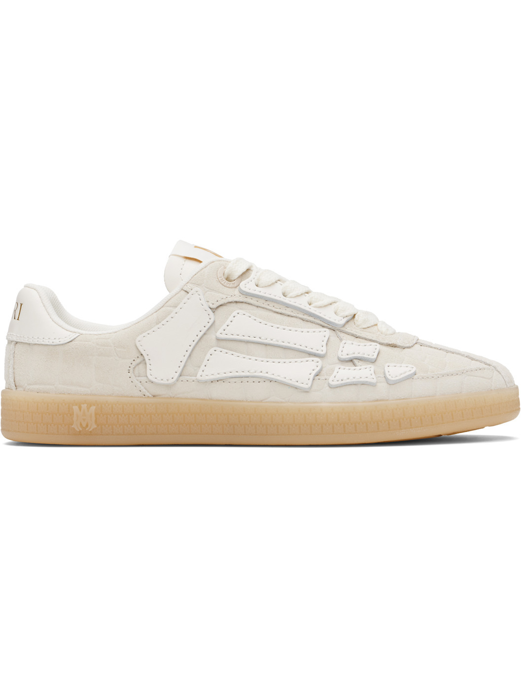 Low-top croc-embossed suede sneakers. · Lace-up closure · Logo patch at padded tongue · Padded collar · Graphic appliques at sides · Logo embossed at heel tab · Mesh lining · Logo-embossed textured rubber midsole · Treaded rubber sole Supplier color: Alabaster Upper: leather. Sole: rubber. Made in Viet Nam 252886F128029